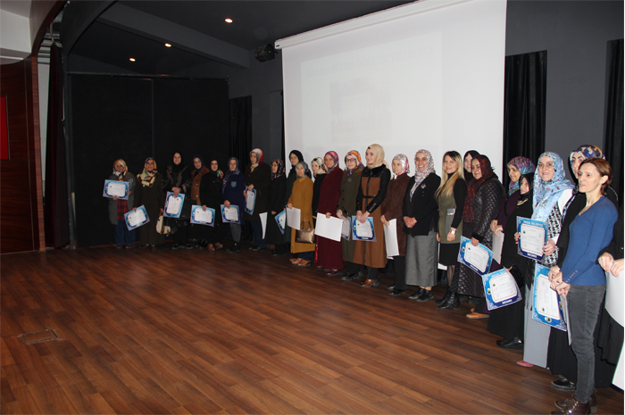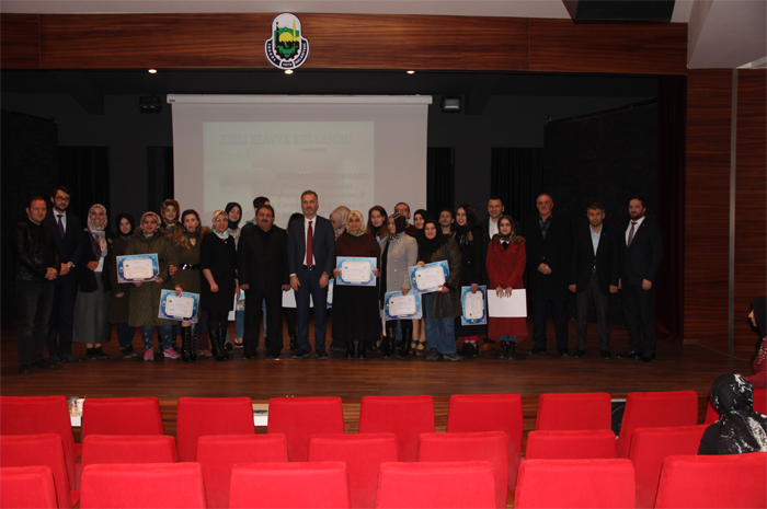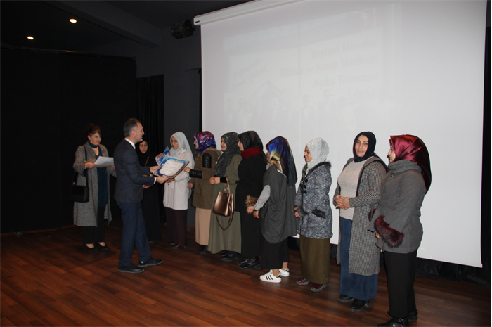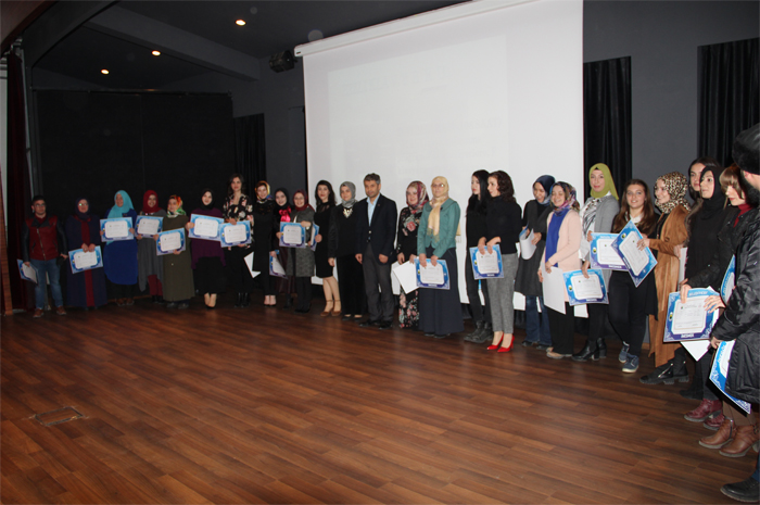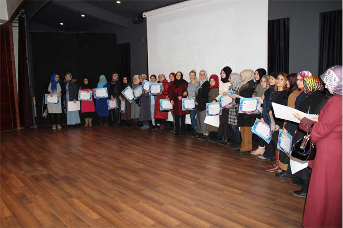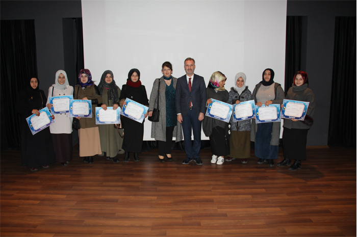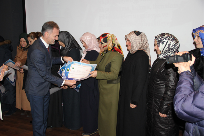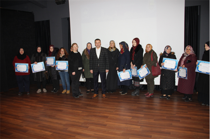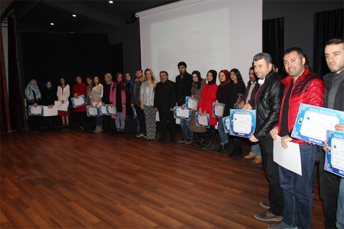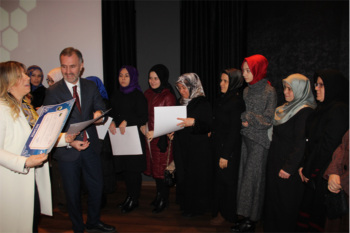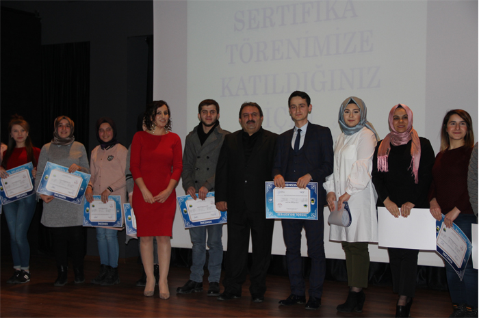 Başkan Taban'ın konuşmasının ardından, tüm kursiyerler gruplar halinde sahneye davet edildi. Törende; Bilgisayar Destekli Muhasebe, Bilgisayara İşletmeciliği, Ofis Programları Kullanımı, İleri Excel Geliştirme ve Uyum Eğitimi, İngilizce Seviye A1, Arapça Seviye A1, Hasta Kabul İşlemleri, Bilgisayar Destekli Proje Çizimi(AUTOCAD), Standart Türk Klavyesi, Türk İşaret Dili, Diksiyon, İş ve Sosyal Hayatta İletişim, Föncü, Makrame Sarkaç Yapma, Dekoratif Deri Yastık Dikimi, Çuval Çiçek Yapma, Aliminyum Kabartma, Drapaj Tekniği ile Kadın Etek Dikimi, 2-6 ve 6-12 yaş Çocuk Elbise Dikimi, Hurç Dikimi, 6-12 Yaş Çocuk Etek Dikimi, Şal Etol Dikimi, Kadın Elbise Dikimi, İğne Oyası ve Pastacı Çırağı alanlarında eğitim alan 772 kursiyere sertifikaları protokol üyeleri tarafından takdim edildi.