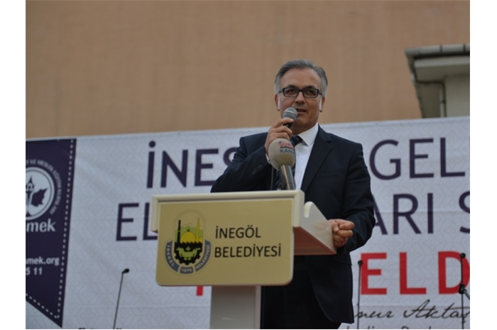 Belediye Başkanı Alinur Aktaş’ın ardından ise Kaymakam Ali Akça kısa bir selamlama konuşması yaptı. İnesmek kurslarının önemine değindiği konuşmasında Kaymakam Akça şu ifadelere yer verdi: “Burada az sonra açılışını gerçekleştireceğimiz güzel bir sergi olacak. İnegöl Belediyesi’nin ve İnegöl Halk Eğitim Merkezi Müdürlüğü’nün omuz omuza yürüttüğü birlikte, beraberlikte sergilediği güzel çalışmaların somutlaşmış örneklerini hep birlikte göreceğiz. Bu güzel çalışmalara imza atan hanımefendilere, beyefendilere, İnegöl Belediyemize ve Halk Eğitim Merkezi Müdürlüğümüze tebriklerimi bildiriyorum. Hepsi el emeği göz nuru eserler. El emeği göz nuru tabiri öyle sıradan bir tabir değildir. El emeği göz nuru dediğimizde onun arkasında ciddi bir emek vardır. Onun arkasında ciddi bir adanmışlık vardır, zaman harcama vardır, çalışma vardır. Bizleri yaratan Cenabı Hak güzel kitabımız Kuran-ı Kerim’de der ki; kişi için ancak çalıştığının karşılığı vardır. Ben, siz değerli çalışan insanlara huzurlarınızda tebriklerimi bildiriyorum. Serginin hayırlı uğurlu olmasını diliyorum” dedi.