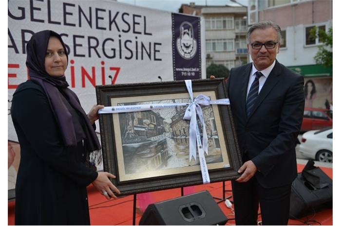 Konuşmaların akabinde protokol üyeleri kursiyerlere kurs bitirme belgelerini takdim etti. Kursiyerler de protokol üyelerine eserlerinden hediyeler sundu. Daha sonra kurdele kesimiyle İnesmek’in 2015-2016 eğitim öğretim yılı yıl sonu geleneksel el sanatları sergisinin açılışı yapıldı. Yoğun kalabalık ve protokol üyeleri birbirinden güzel eserlerin izlenime sunulduğu sergiyi gezerken hayranlıklarını gizleyemedi.